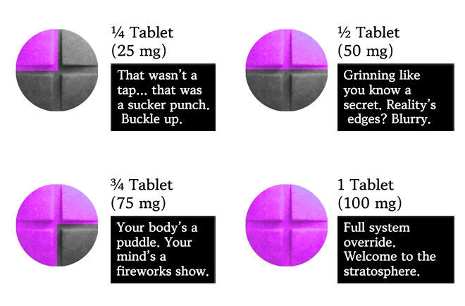 Start Low: Begin with ¼ tablet (12.5mg) to assess tolerance. Wait: Allow at least 90 minutes to gauge effects. Adjust: If needed, incrementally increase the dose in future sessions. Always consult with a healthcare professional before starting any new supplement regimen.