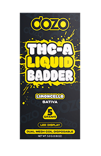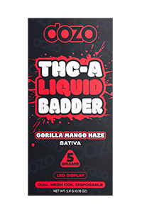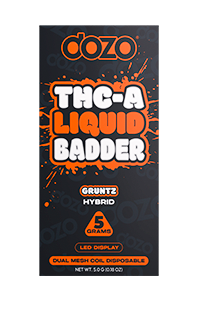 The Dozo THC-P + Sugar Sauce Disposable Vape delivers a potent blend of cannabinoids, including THC-P, THC-A, and live hash rosin.