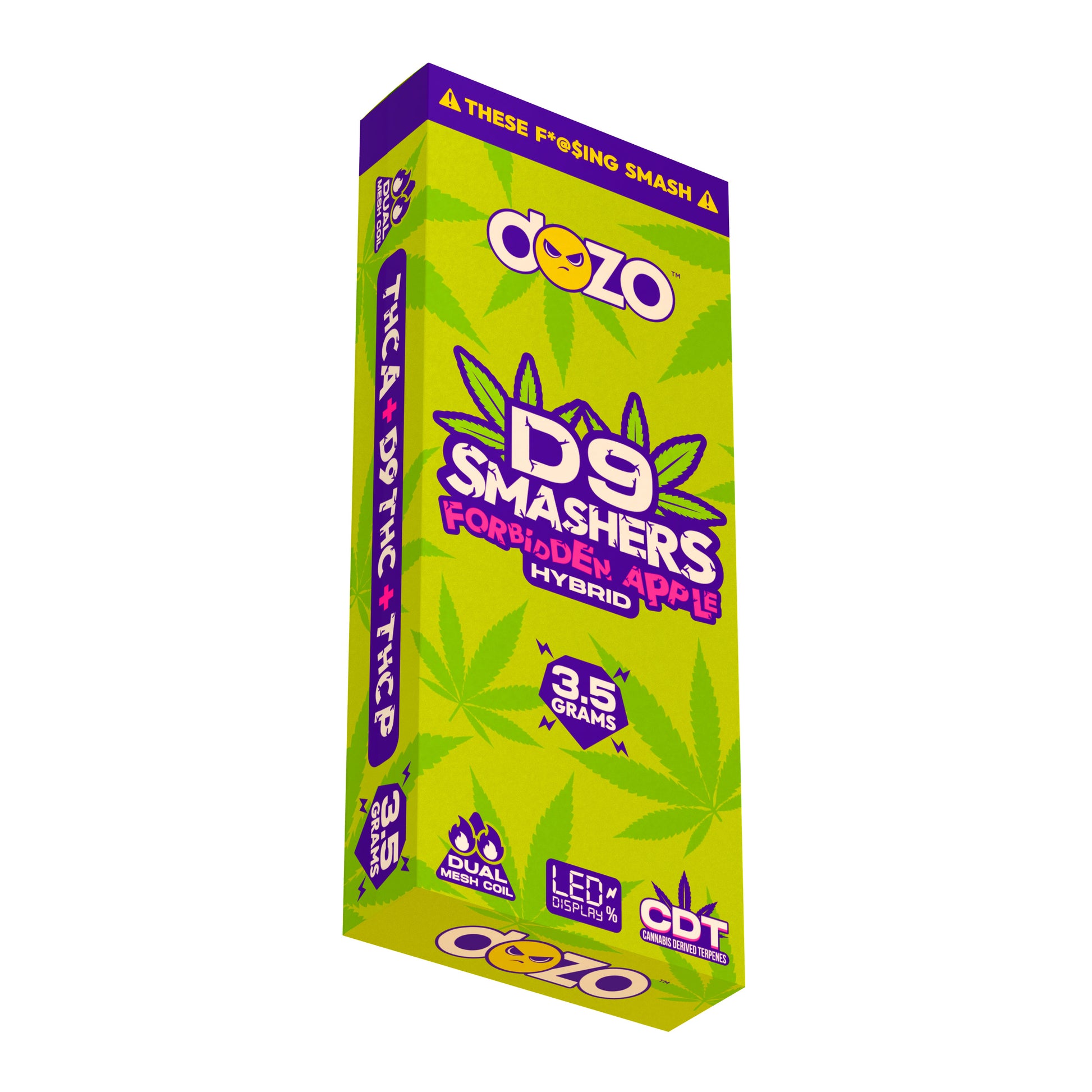 The 3.5g Dozo D9 Smashers THC-A Disposable delivers a potent blend of cannabinoids, including THC-A, Delta-9 THC, and THC-P.