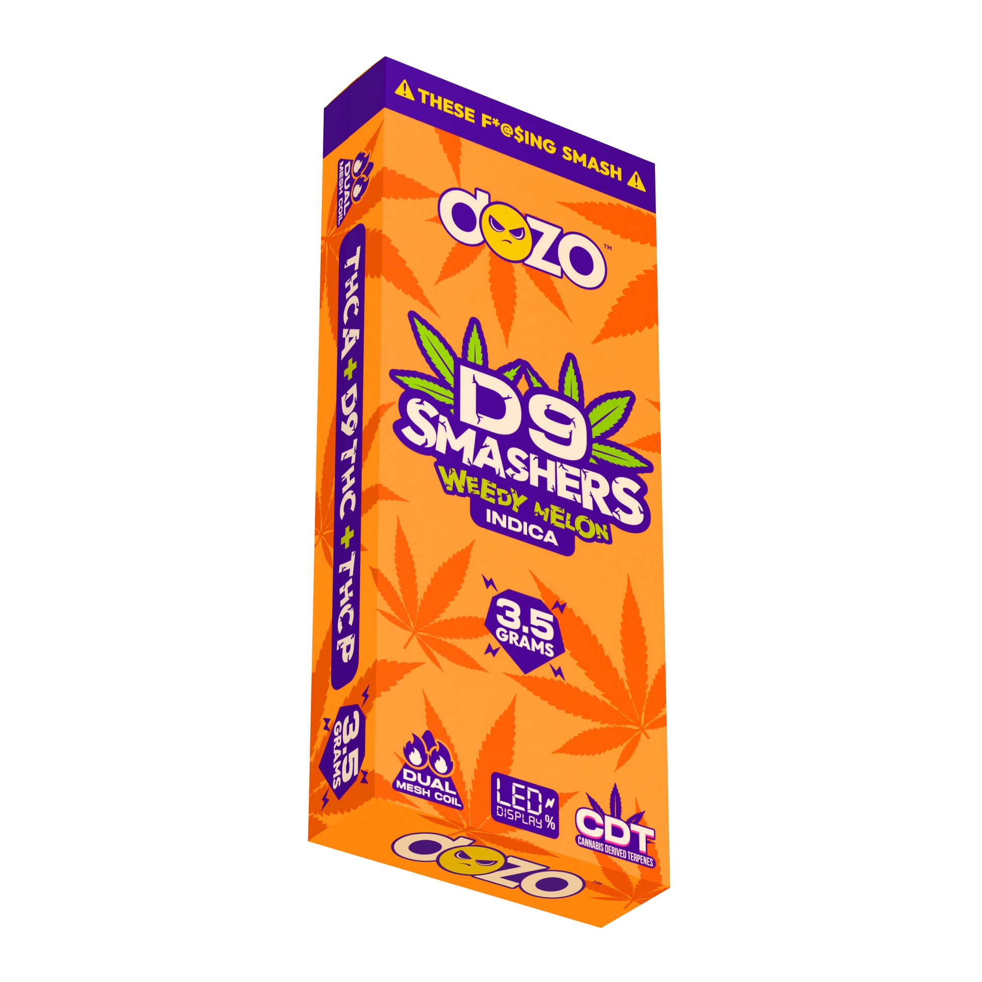 The 3.5g Dozo D9 Smashers THC-A Disposable delivers a potent blend of cannabinoids, including THC-A, Delta-9 THC, and THC-P.