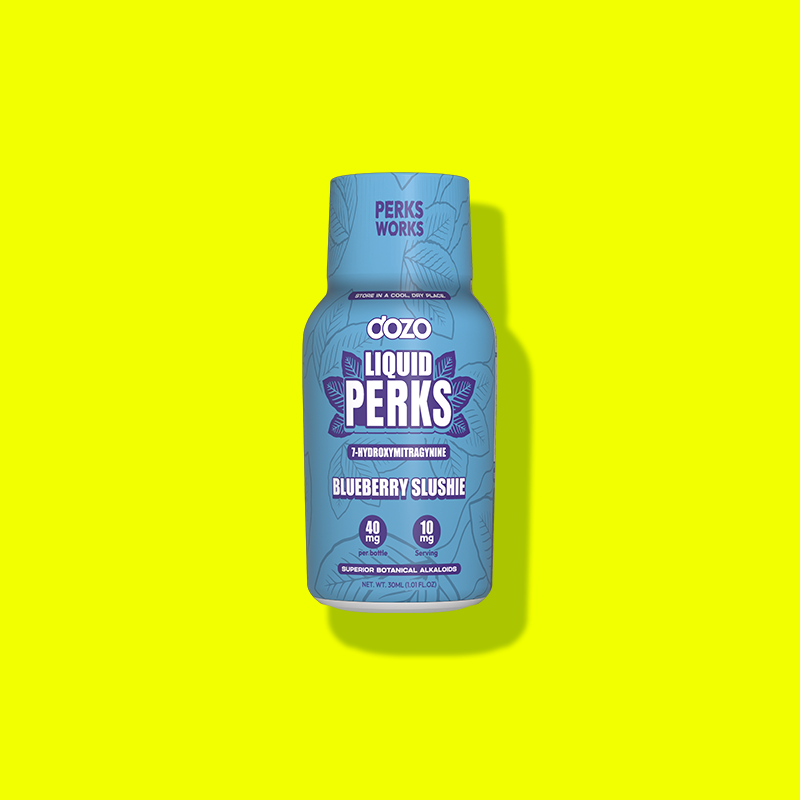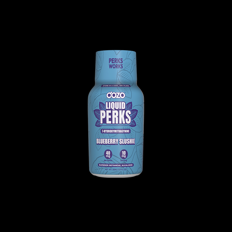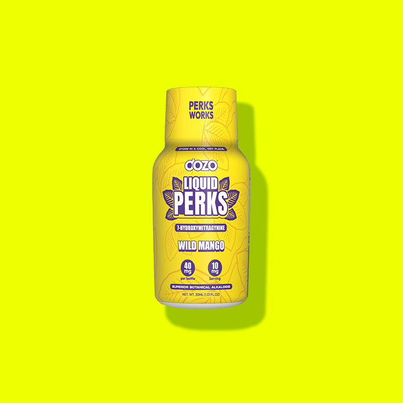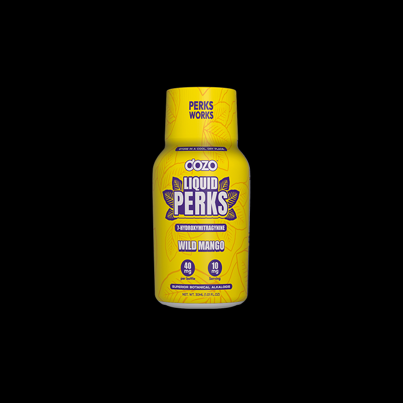 Dozo Liquid Perks delivers 7-Hydroxymitragynine in a fast-absorbing Wild Mango flavored liquid.