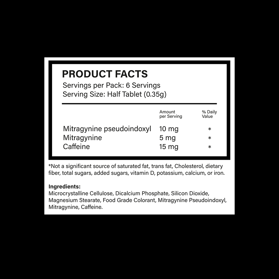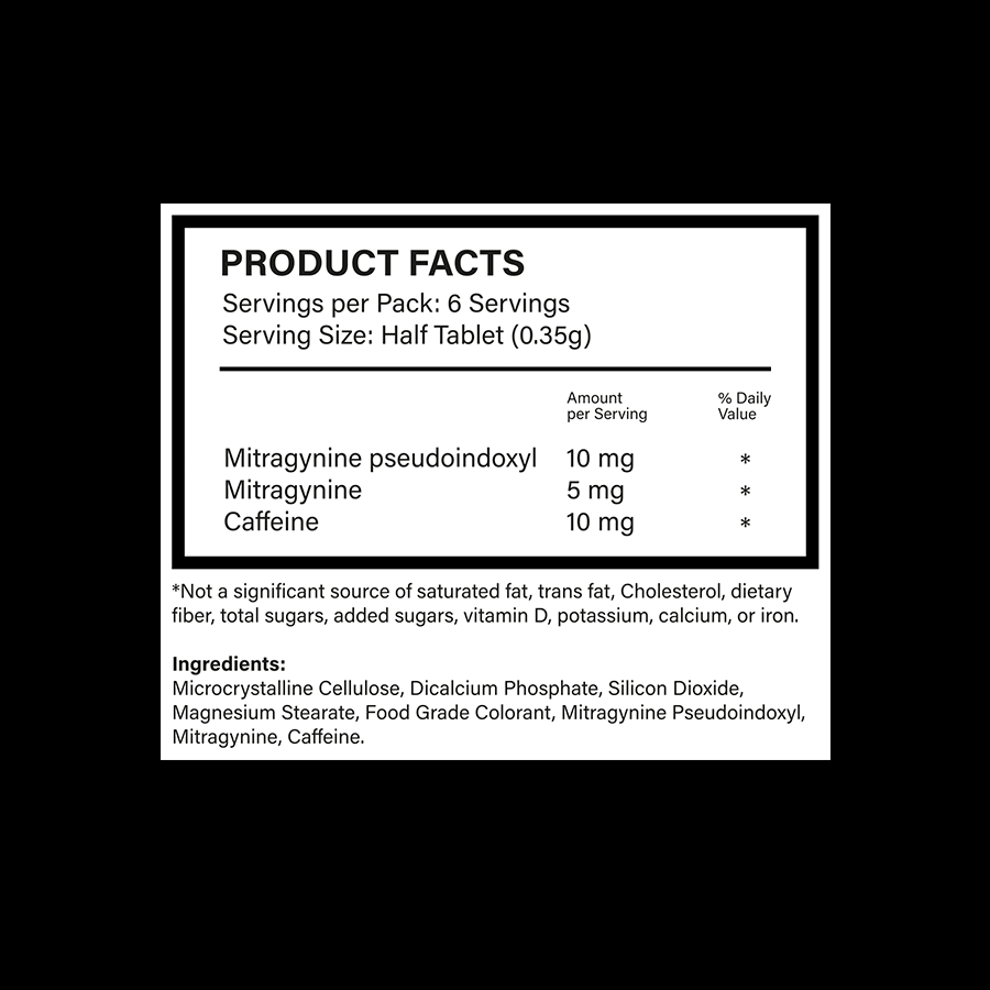 - Mitragynine (5mg): Known for its calming and stimulating properties, it creates a balanced and effective blend.